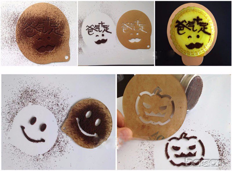 12 бр шаблона за торта,кекс и всякакво изкушение,което чрез тях става още по-красиво с пудра захар ,спрей или какао се ръси върху тях и се получава избраната форма,след което се премахва за многократна употреба