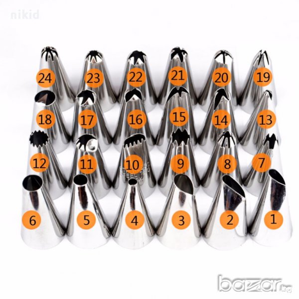 кутия с 24 бр накрайника + адаптор съединител накрайници за шприц пош за крем украса торта и други → Обява 16538868