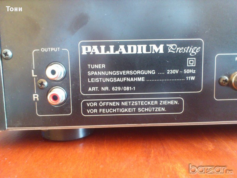 Предлагам красив тунер Palladium prestige произведен в Германия.Дървени страни пиано лак,масивен метален панел.Технически изправен ,външен вид видно от снимките.Размери 460/95/300/.