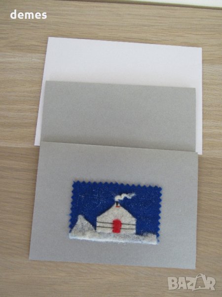 Ръчно изработена коледна картичка от филц с плик → Обява 16551913