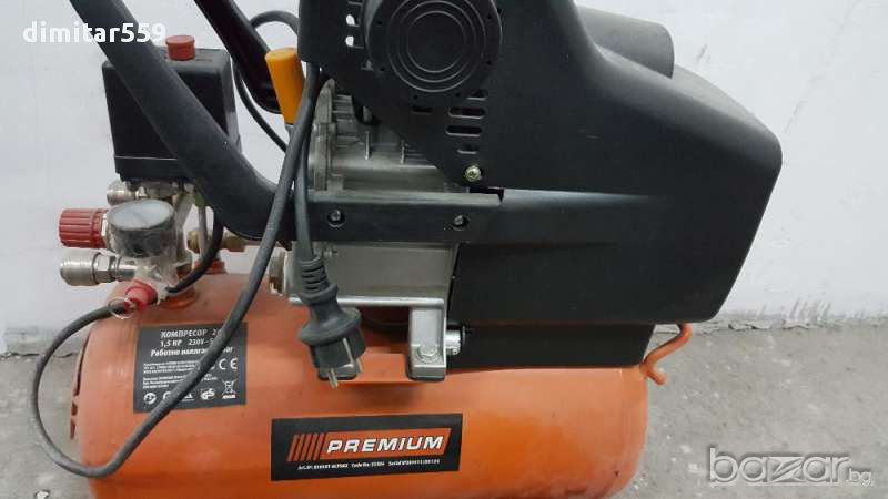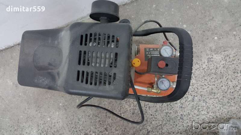 Продавам употребяван но във безупречно състояние малък 24 литров маслен компресор за въздух, което е видимо и от снимките. Както на външен вид така и по отношение на изправност от към техническо състояние никакви забележки. Донесен от Германия и ползван известно време за гайковерт. Предназначението му е за всякакви цели: боядисване, помпане на гуми пневматични инструменти, обдухване на електронни платки от лаптопи компютри и други подобни дейности. А техническите му характеристики са следните: Захранващо напрежение 230V B-50Hz. Мощност на двигателя 1500W. Производителност при нагнетяване 206 л /мин. Максимално налягане 8 bar. Честота на въртене на празен ход 2850 мин-1. Обем на бутилката 25 литра. Цената на, която ще го продам е 260 лв не се коментира, предоговаря и бартери не ме вълнуват! Пращам и по Еконт с предварително капаро. Телефон за връзка 0877487040 ако ви трябва или имате въпроси моля звънете или пишете на съобщения във формата за контакти със продавача срещу обявата във сайта! Задавайте там вашите въпроси на, които ще отговоря при първа възможност, най късно във рамките на 24ч! Пожелавам на всички ви лек и хубав ден!