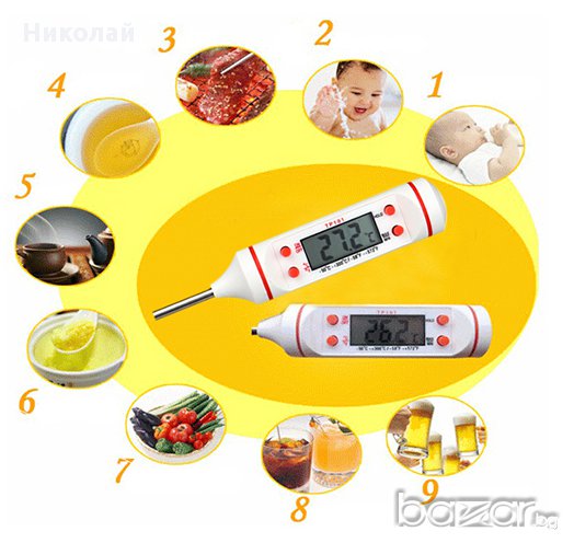 термометър подходящ за за храни ,напитки, течности , готвене, барбекю , детско мляко и др.