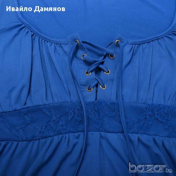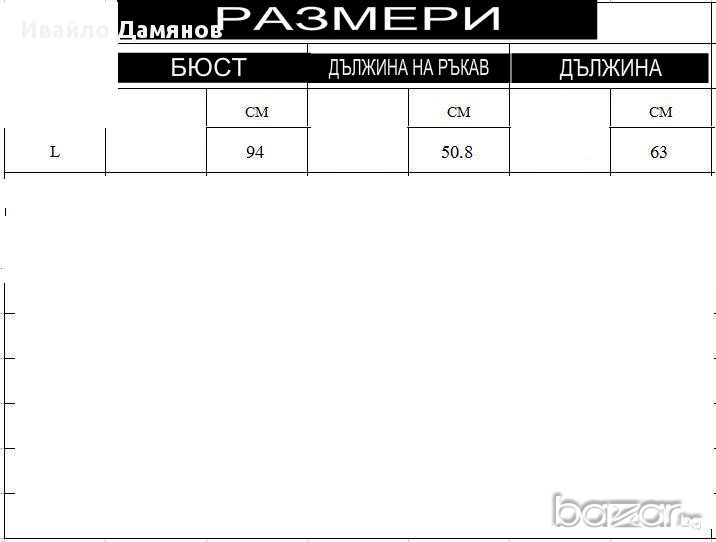 Нова дамска блуза с дълъг ръкав и презрамки. Материал полиестер, рамер L. Цвета е тъмно син и се вижда най-добре на първата снимка. Размерите са дадени на предпоследната снимка.