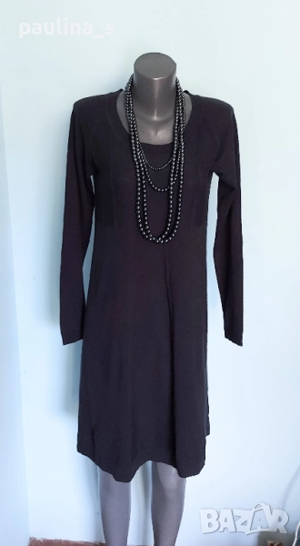 4️⃣. L / 2XL - "Gina Benotti". Цената е крайна, без пазарлъци 19,99лв / 10 евро. Много стилна и елегантна сезонна рокля тип туника, с реглан ръкав и плетеници. Цветът е тъмно син / Navy blue. Материята е полиакрил, пухкава и лека. Дрехата може да се носи и като туника върху клин, за големите размери. Без дефекти и етикет. Герданът е нов в подходяща цветова гама, при желание също се продава - цена 29,99лв / 15 евро.