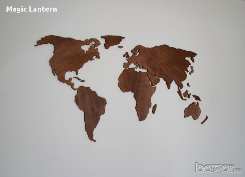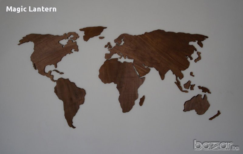 Дървено пано, изобразяващо картата на света, удобно за