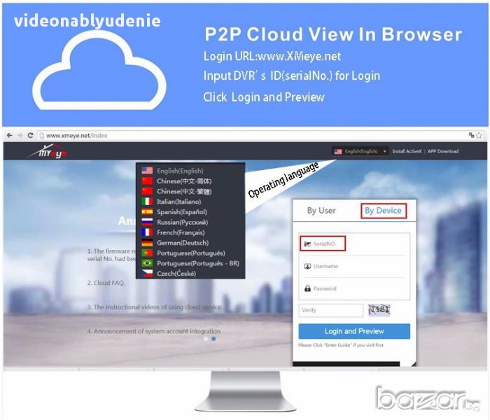 Cloud Technology: Облачната технология позволява да виждате двр-а и съответно камерите, вързани към него от всяка интернет точка от цял свят и от