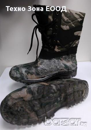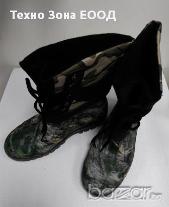 Тези ботуши, тип апрески са изцяло с термо вата от вътрешната страна,в основата си, външно са изцяло отлети със силиконово покритие,при петата и отпред са подсилени, от глезена на горе са с промазана текстилна материя, която задържа влага и студ. Метални капси с връзки осигуряват пристягане към краката. Цялата височина на апреските е 28см.