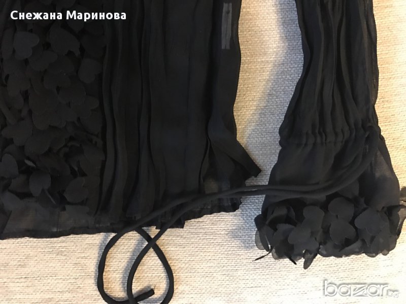 Елегантна черна риза. Материя фин шифон. Окрасена е с нежни съцчица с връзки на ръкава. Изключително стилна.