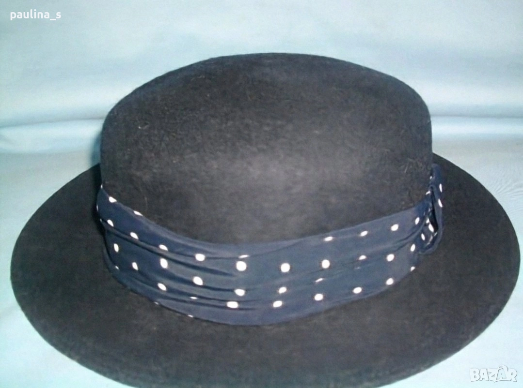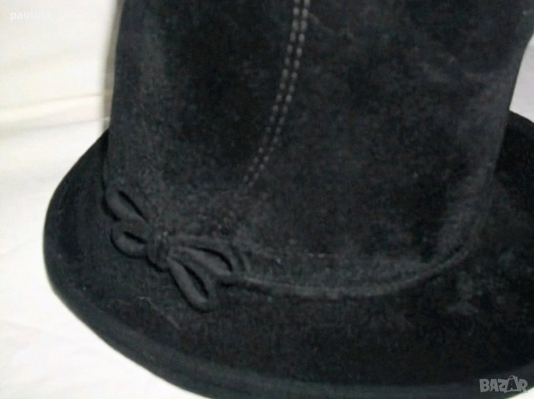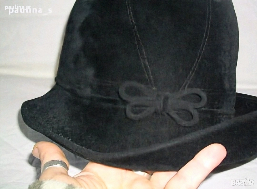 2️⃣. Винтидж / Дамска дизайнерска капела - Черно Бомбе. Цената е крайна 79,99лв / 40 евро. Шапката е с издължена предна част, изработена в дизайнерско студио за 140лв / 70 евро , с бутикова стойност е. Материалът е твърд кадифен филц. Изтънчен и красив аксесоар за почти целогодишна употреба! Декориран дискретно, за ценителки на бутиковите аксесоари.