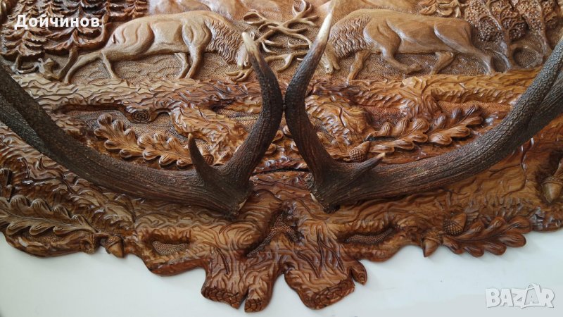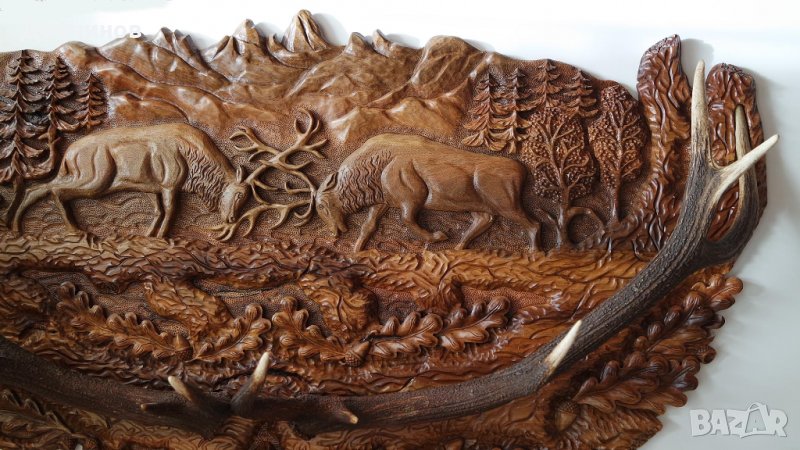 Пано - дърворезба с еленови рога, уникат → Обява 16652289