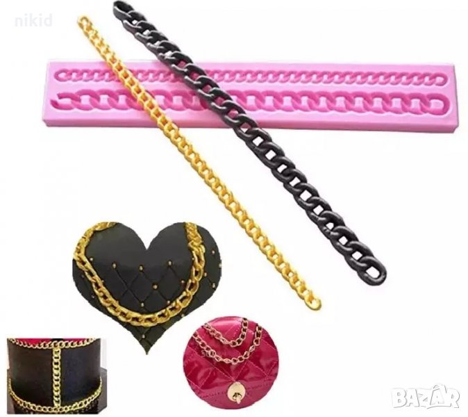 верижка верига дръжка колие ланец синджир силиконов молд форма калъп за фондан шоколад торта украса → Обява 16661931