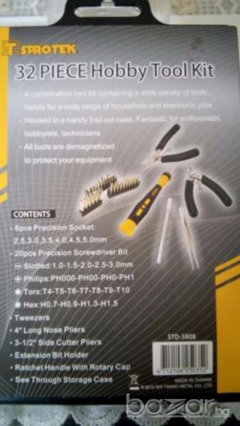 Комплект от 32 бр. накрайници за отвертки, битове, пинсета, клещи Sprotek, внос от Германия.