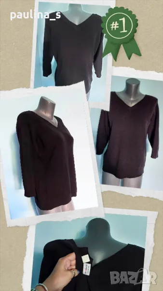 1️⃣. Колаж / L / 3XL - цена 29,99лв / 15 евро. Много шикозен дамски пуловер с дълбоко деколте и гръб-стъпаловидно. Предната и задната част са еднакво дълбоки, открива се и част от гърба. Много атрактивно за окото.