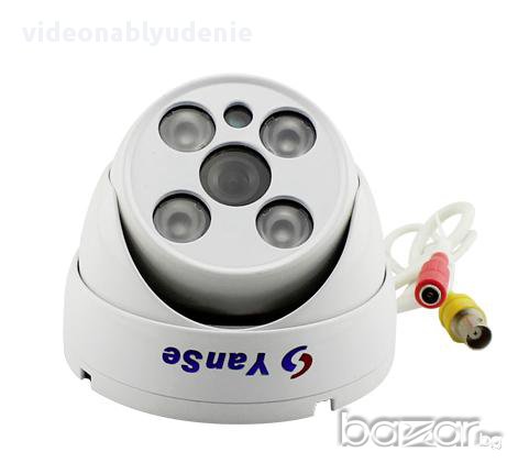 Инфрачервена видеокамера с подсветка от 4 броя 5-то поколение LQ H.LED 'Wafer' Array масива за нощно виждане (Тайванска военна технология).Какво е 1080H стандарт и какви са предимствата на 1080H резолюция? 1080H е най-новият стандарт при камерите за видеонаблюдение и ДВР рекордерите. Този стандарт предлага високо качество на изображението, чрез прилагането и ползването на нов тип сензор. По този начин изображението от камерата е с резолюция 1080 пиксела по хоризонтала и 700 пиксела по вертикала.Камерите с резолюция 1080H предлагат с 44% по-високо качество на заснемане, а ДВР рекордерите с 44% по-високо качество на заснетото спрямо досегашните модели камери. Това гарантира по-добро качество и на направеният от подобна система запис, което пък осигурява по-добра детайлност на картината.Записът и заснемането при по-висока резолюция осигуряват по-лесно различаване на обекта благодарение на по-високата резолюция при заснемане и запис.Висока дефиниция: 1080Н(HD резолюция)Eфективни пиксели: 1024 (H) x 768 (V)Особености: Удароустойчивост / Водоустойчивост / ВлагозащитеностНомер на модела: YS705Сензор на камерата : 1/3" CMOSРазстоянието за IR перфектно нощно виждане е 40 метра с 4 H.LED светлини - широк ъгълФункция автоматичен IRC превключвател, който прави ден и нощ наблюдението реалноИзползва високо-производителен CMOS сензор за изображения с милион пиксела резолюцияАвтоматична 2D-DNR функция за намаляване на шума, която ни дава изключителното качество на ниска осветеностМоделът е с метален корпус с уникална производителност, който прави продукта с най-добър външен вид от висок класРазмер на обектива: професионални M12 F1.2 HD 3.6мм лещи за широк ъгъл на вижданеСигнална система: PALБаланс на бялото: АвтоматиченAGC: Автоматично регулиране на усилванетоАвтоматична компенсация на задното осветяванеВътрешнa синхронизираща системаГама: 0.45Видео изход: 1Vp-р, 75ohm , BNC конекторИнфрачервен спектър: 850nmМин.Осветление: 0 Lux - нощем, при включени инфрачервени светлини, 0.5 Lux през деня (F1.2, AGC ON)IR-CUT Filter - 4 броя LED масива и механичен IR-cut филтър, който спира инфрачервените лъчи при дневен и ги пуска при нощен режим;Скорост на снимачката: 1/50-1/100.000 сек.Съотношение сила на сигнала/ниво на шума: > 70db (с автоматично изчистване на шума)IP66 Защита - Водо и УдароусточивостУсловия на работа: от -20°С до +50°СВлажност 90% или по-малко ( без кондензация )Ползва захранване : 12V 1А (не е включено в комплекта)Размери на камерата: 9 х 9 х 6 смДължина на кабела: 40смРазмери на пакета: 10cm x 10cm x 9cmТегло на пакета: 330 грамаПо какво се различават матричните диоди от обикновените и какви са техните предимства?Разликата е, че IR LED Array диодите имат по-широк ъгъл на излъчване на светлината и многократно по-висока яркост/мощност/, което осигурява на една охранителна камера много голям обхват на нощното виждане, дори да са снабдени с 2 или 4 такива диода.Основната разлика е, че при новите диоди е избегнат „тунелният“ ефект при осветяване. Технологията ARRAY позволява на диодите да разпръскват светлина равномерно върху цялото обхващано пространство.Ъгъла на осветяване на новите диоди е много по голям, може да достигне до 180 градуса. Традиционните са с доста по-ограничен ъгъл на разпръскване на инфрачервена светлина, обикновено около 40-50 градуса.- LED Array подсветката е с много по-висока яркост. Изходната мощност на единичен лед array диод е около 1000mW – 2500mW, многократно 