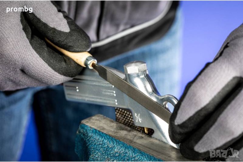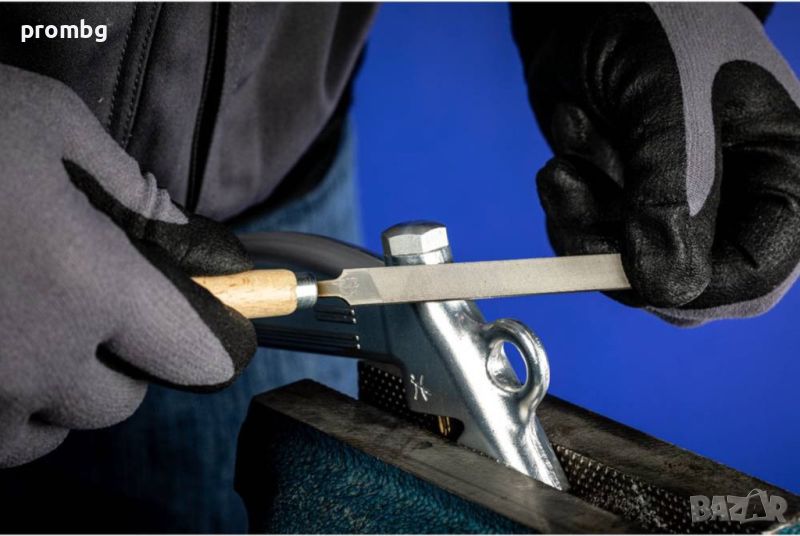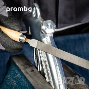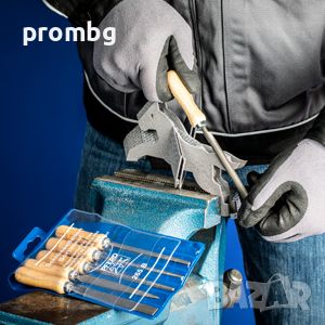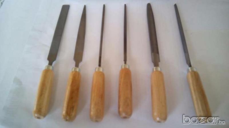 пили с дървена дръжка, произведени в Германия 6 бр., 265 K 100 H2. Комплектът включва следните пили: кръгла, плоска, плоска със заострен край, квадратна, полу обла и триъгълна. Пилите са подредени в метална кутия. Дължина 100 мм. Тегло 160 гр. Материал: висококачествена инструментална стомана.