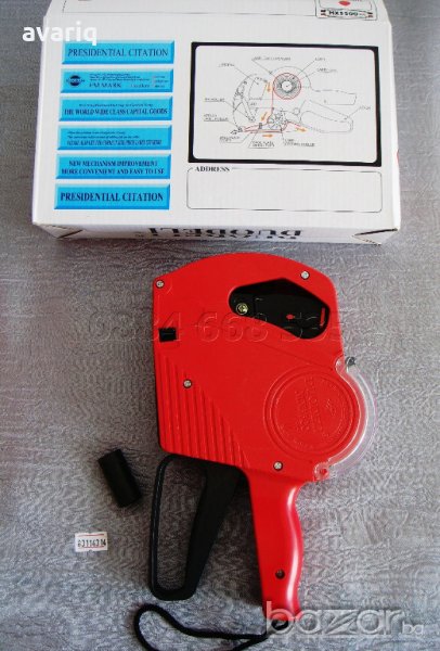 Пистолет за отпечатване и разлепване на самозалепващи етикетчета (стикери) с информация за цената на стоката и продукта.