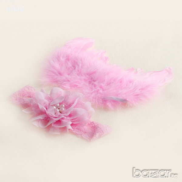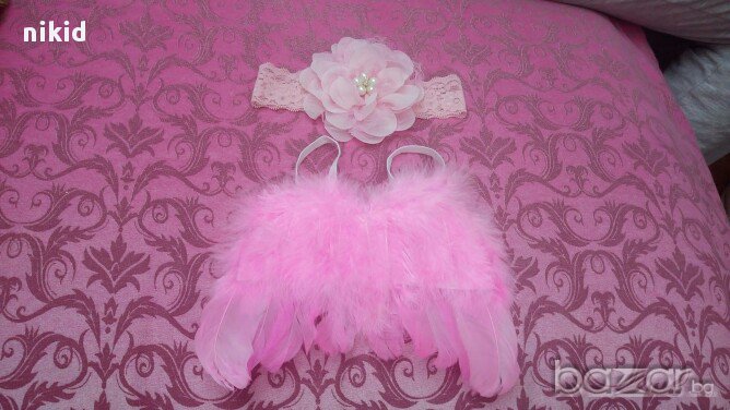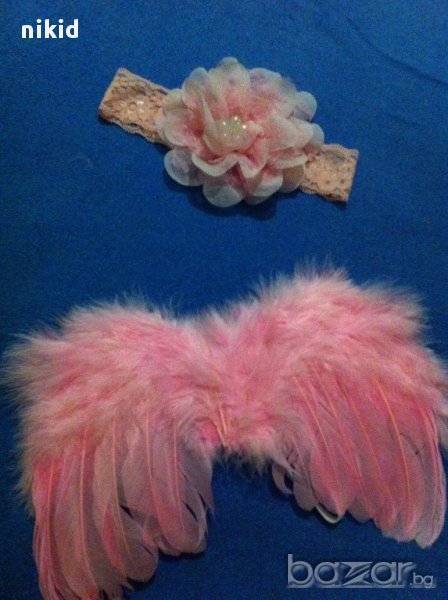 ангелски крила криле и лента с пандела за глава за бебе фотосесия фото → Обява 16700869