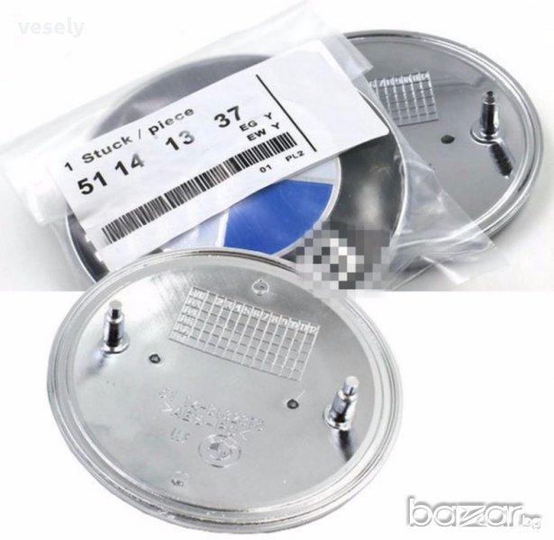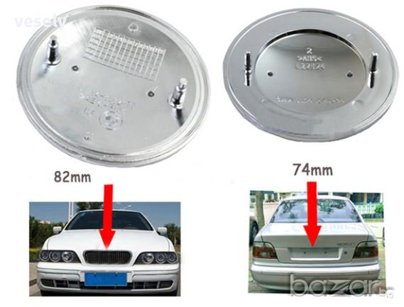 Логотип за преден капак - 82 mm, логотип за багажника 74 mm. Цвят – синьо бял на черен фон с логото на BMW. Цената на една бройка – 18 лв. Емблемите са чисто нови с оригинална опаковка Made in Germany, неразопаковани.