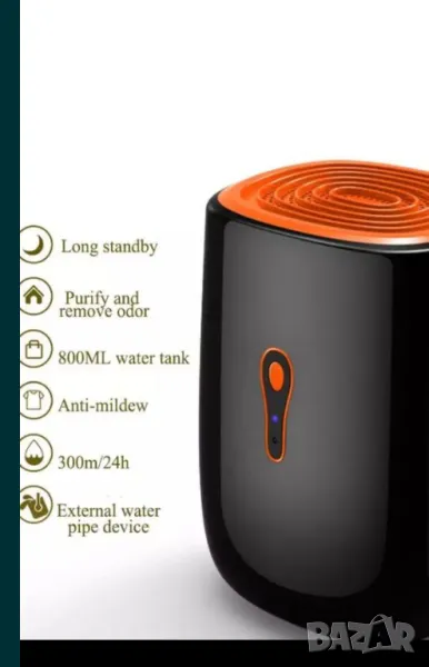 По-мощен 25W с вместимост 800мл (черен) - 55€, с дисплей показващ влажност и температура -65€