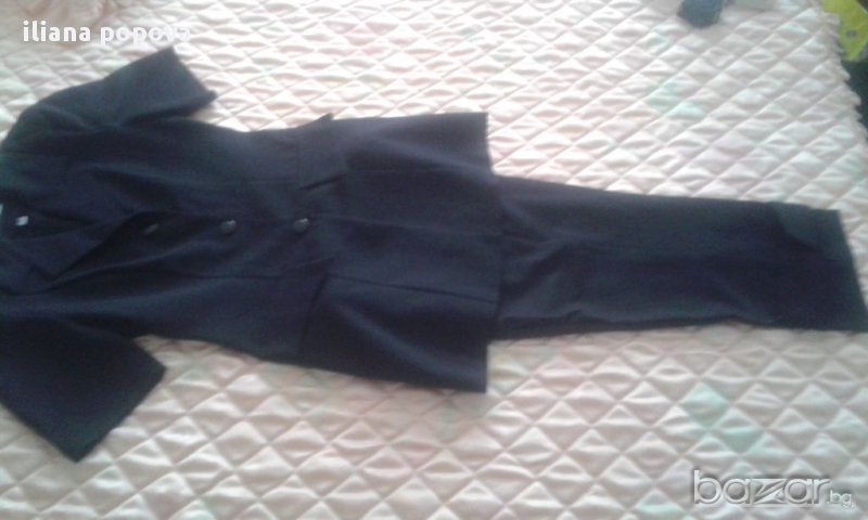 Размери:талия-72см.,ханш-90см.,дължина-79см.и70см.в подгънато състояние.Перфектно състояние.Може да го комбинирате със сакото.Размери на сакото в обява сака.