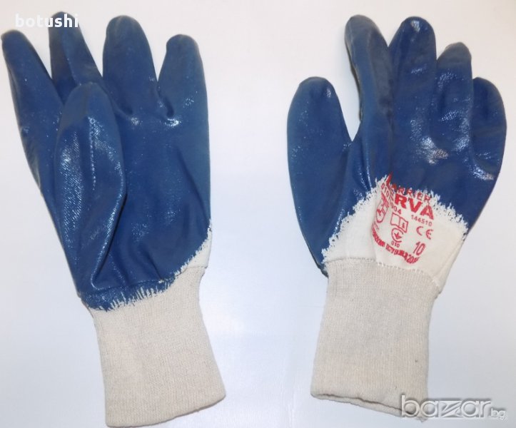Материал:Ръкавици от памучно трико 3/4 потопени в нитрил с еластичен маншет от трико. .