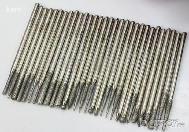 борчета с диамантени накрайници с различна форма и размери,за фино и грубо шлифоване, за ноктопластика и гравиране, за работа с микро електрически дрелки и Дремел.