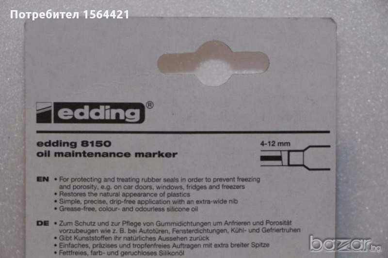 силиконов маркер 4.00-12.00 мм, ЕDDING, Германия, високо качество. Без цвят и миризма. Използва се за поддръжка на гумени уплътнения на автомобилни врати, хладилници, фризери и др.