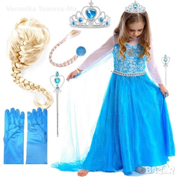 Прекрасна дълга рокля на принцеса Елза.Има размери 100,110см,120,130см,140см-ръст на детето.Аксесоари 15лв.