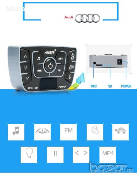 Вход за mp3 (може да включите телефон или друго устройство на което сте качили любимите песнички на малкия шофьор)