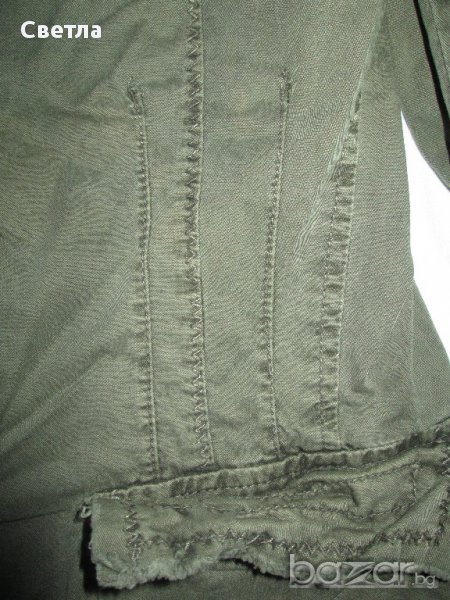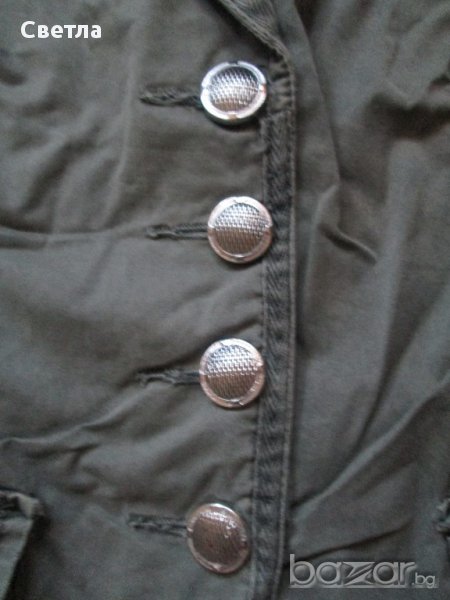 Зеленикаво сакенце,памучно, с два джоба,вталено. Не е ползвано.