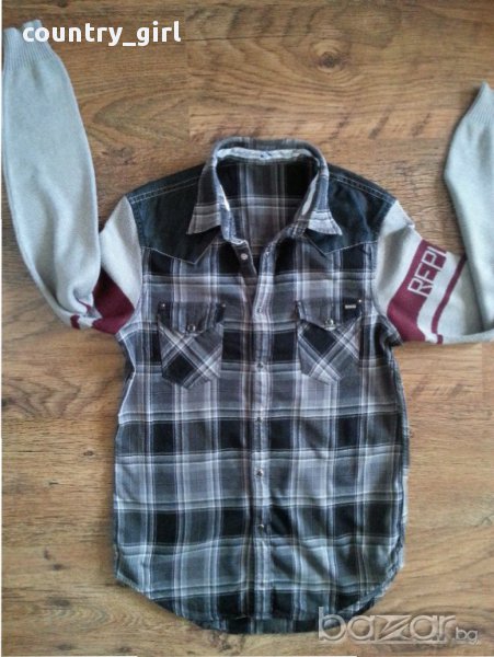 Replay Exclusive Shirt - страхотна мъжка риза, 100% оригинал, много готин модел, ръкавите са плетени, точни размери: ширина подмишници - 45см, дължина - 67см, дължина на ръкава - 62см