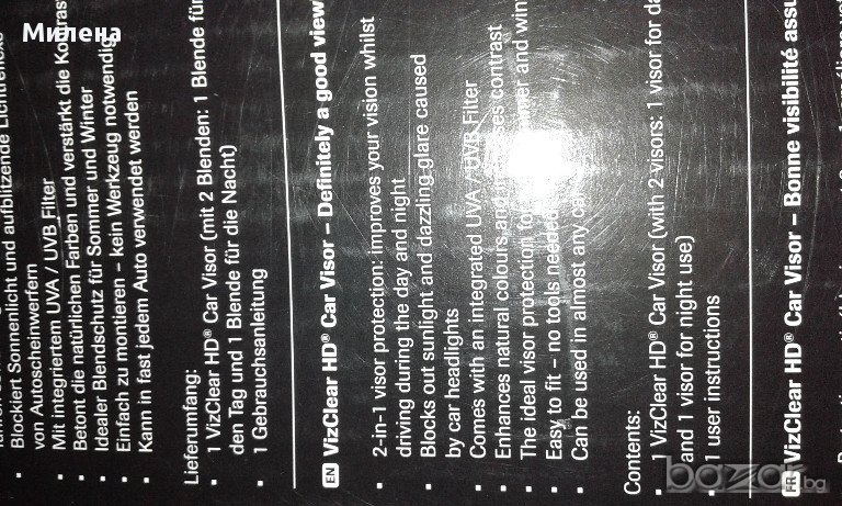 Оригинален сенник за кола - ден и нощ - VizClear HD ! Блокира UV лъчите, снимка 1 - Аксесоари и консумативи - 16815662 Оригинален сенник за кола - ден и нощ - VizClear HD ! Блокира UV лъчите, снимка 2 - Аксесоари и консумативи - 16815662 Оригинален сенник за кола - ден и нощ - VizClear HD ! Блокира UV лъчите, снимка 3 - Аксесоари и консумативи - 16815662 Оригинален сенник за кола - ден и нощ - VizClear HD ! Блокира UV лъчите, снимка 4 - Аксесоари и консумативи - 16815662 Оригинален сенник за кола - ден и нощ - VizClear HD ! Блокира UV лъчите, снимка 5 - Аксесоари и консумативи - 16815662 Оригинален сенник за кола - ден и нощ - VizClear HD ! Блокира UV лъчите, снимка 6 - Аксесоари и консумативи - 16815662 Оригинален сенник за кола - ден и нощ - VizClear HD ! Блокира UV лъчите, снимка 7 - Аксесоари и консумативи - 16815662 Оригинален сенник за кола - ден и нощ - VizClear HD ! Блокира UV лъчите, снимка 8 - Аксесоари и консумативи - 16815662 Оригинален сенник за кола - ден и нощ - VizClear HD ! Блокира UV лъчите, снимка 9 - Аксесоари и консумативи - 16815662 Оригинален сенник за кола - ден и нощ - VizClear HD ! Блокира UV лъчите, снимка 10 - Аксесоари и консумативи - 16815662 Оригинален сенник за кола - ден и нощ - VizClear HD ! Блокира UV лъчите, снимка 11 - Аксесоари и консумативи - 16815662 Оригинален сенник за кола - ден и нощ - VizClear HD ! Блокира UV лъчите, снимка 12 - Аксесоари и консумативи - 16815662 1/12