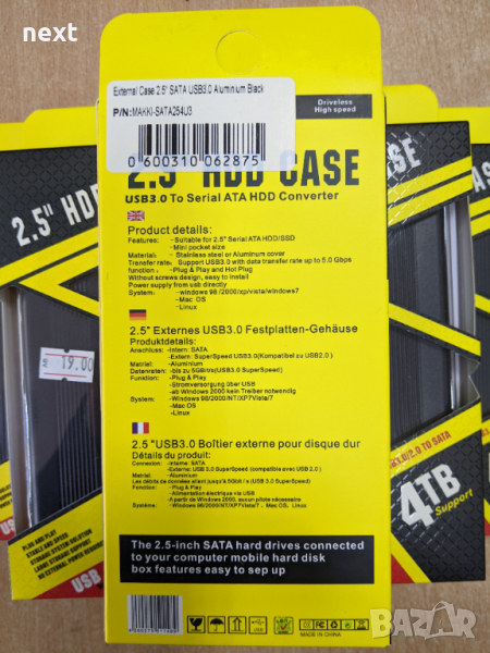 USB 3.0 алуминиева кутия за външен хард диск 2.5” SATA + Гаранция