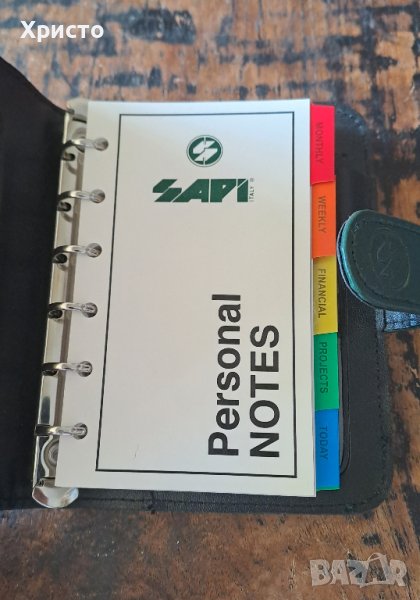 Продавам органайзер бележник с калкулатор и химикалка комплект Сапи Италия Italy. Естествена кожа и висококачествен промазан плат. Тъмно зелен с калкулатор. Химикалка метал сребро и цвят зелен. Размер на органайзера 11,7х14,3х3 см. Сертификати за произход.Внос от Италия. Картонената кутия има леки забележки.