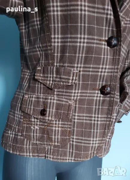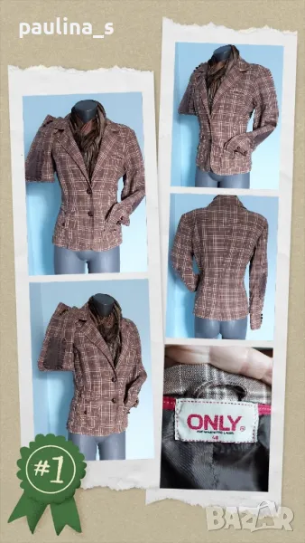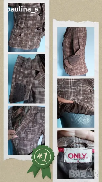 2. Колаж / S / M - "Only". Цената е крайна 19,99лв. Спортно дънково сако в каре, с кръпки на ръкавите, три копчета и цепки. Моделът е втален с три външни джобове, един капак и бридерии. Уникално е. Не е ново, без дефекти и етикет.