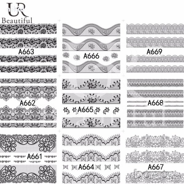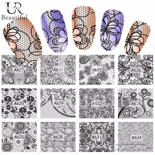 A625-672 48 бр черно бели дантела мрежа татос ваденки водни стикери за нокти маникюр → Обява 16866507
