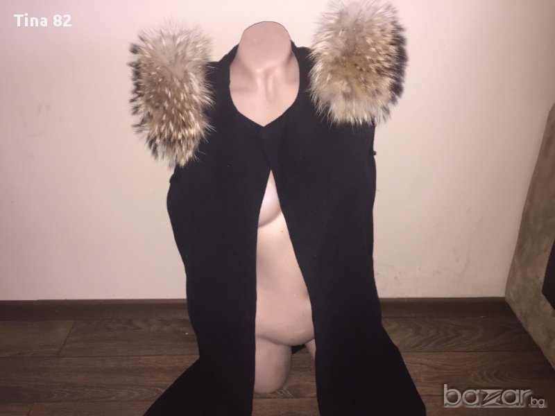 Страхотен кашмирен елек с естествен енот по раменете , без забележки , обличан буквално само веднъж .