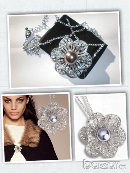 Стилно Колие и Брошка в едно. Посребрено.