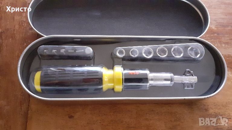 Продавам гедоре в метална кутия, чисто ново, надеждно и качествено, 14 части. Метална кутия с размер 20х7х3,5 см. Внесено от Испания. Има защитен пластмасов прозрачен твърд капак, който се вижда на снимка 6.
