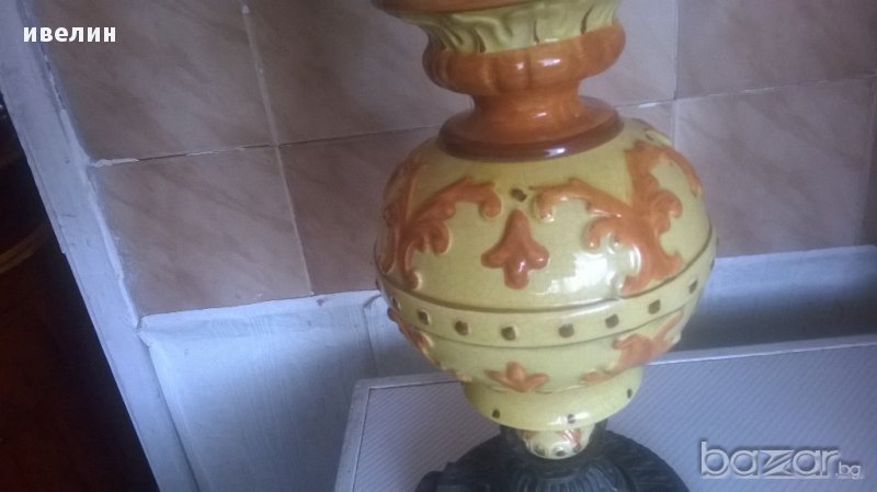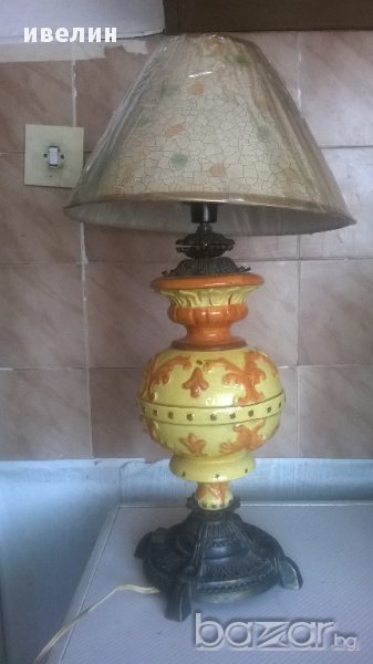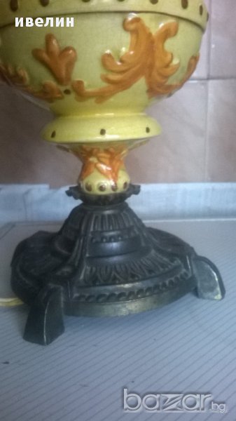 стара нощна лампа.тяло от метал и керамика.ръчно оцветена.висока е 55см.изправна.