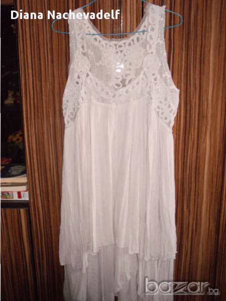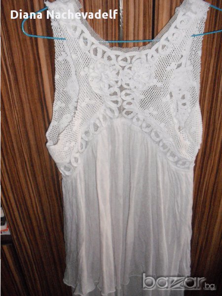 нова ефирна дамска рокля с дантела,цвят бял,лека и тънка материя