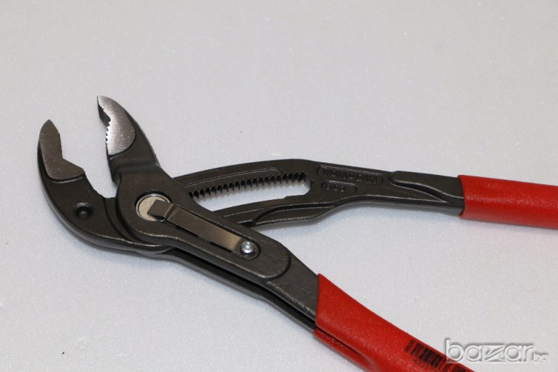 KNIPEX Cobra® QuickSet, 8721250, 250 mm, немски, внос от Германия. Нов модел с бутон за регулиране / заключване на положението. Полирана глава, дръжки с неплъзгащо пластмасово покритие, позиционно регулиране 25; възможности за тръби 2'' Ø ; възможности за тръби 50 Ø mm; възможности за гайки 46 мм; Дължина 250 мм; тегло 335 гр;