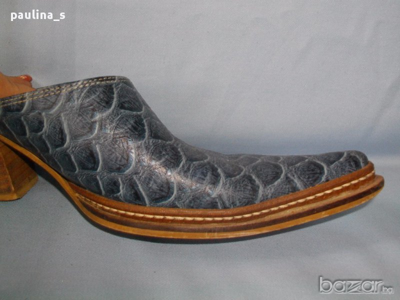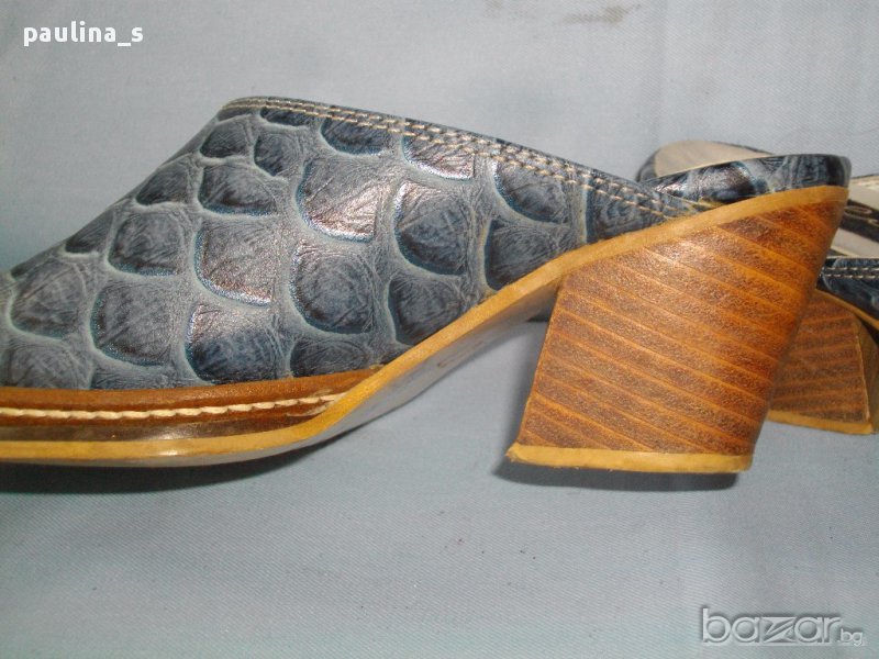 Дамски чехли от естествена кожа с син кроко принт. Подметката е също от пресована кожа, обувани са няколко пъти, без дефекти, много са удобни. Моля, разгледайте и другите обяви и последвайте профила. При покупка за над 70лв, поемам част от доставката до офис на Еконт и правя отстъпка от общата цена, така цената за доставката не изглежда толкова непосилна. Приятно разглеждане. Продажбата е с благотворителна цел, крайна цена. Благодаря за вниманието и отделеното време 🙂