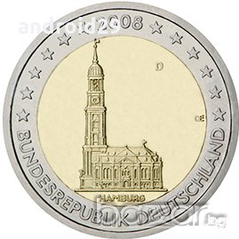 2008 2 Германия 2 EURO / A Църквата Св. Михаил (Хамбург) 12.80 лв/6.54 €