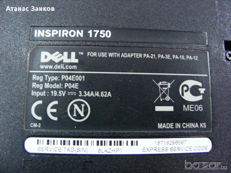 Лаптоп за части DELL Inspiron 1750 → Обява 16940703