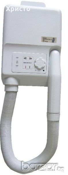 Автоматичен сешоар за тяло и коса. Автоматично включване при сваляне на слушалката и изключва при нейното поставяне на определеното място. Плавно регулиране на потока на изходящия въздух. Влагозащитен извод с напрежение 220V. Предназначен за хотели, фитнес зали, козметични и спа центрове, бани, басейнии и навсякъде където е необходим висококачествен сешоар. Сешоара е произведен от удароустойчива и негорима ABC пластмаса.