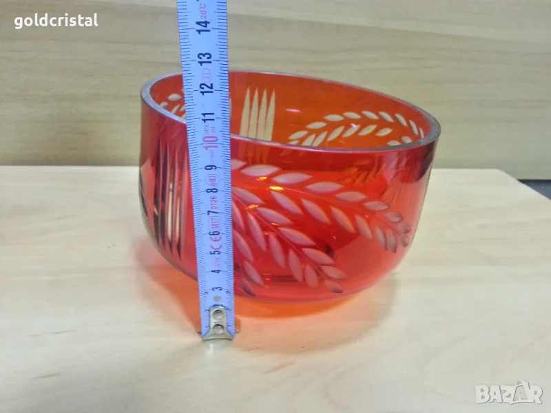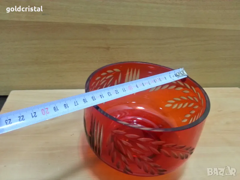 ретро кристална купа за ядки плодове сладки фруктиера бонбониера цветен кристал ръчно гравирана кристално стъкло цветен червен кристал цветно стъкло състояние използвано на гърлото чукнато последна снимка ретро арт декор винтидж колекция арт декор стари антикварни предмети обзавеждане за дома и семейството подходяща за подарък за ценители и колекционери