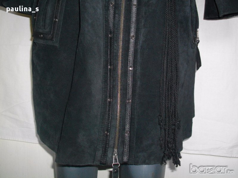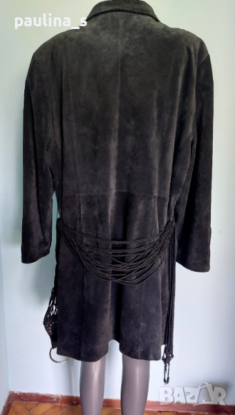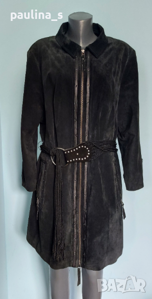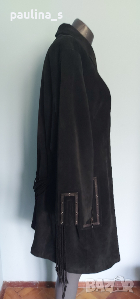1️⃣. 2XL / 4XL - Винтидж аутлет! / "Ulla Popken". Цената е крайна, без пазарлъци 115 евро. Дамско манто от естествен черен набук, гарнирано с кожени ленти отпред и около джобовете. Мантото е голям размер стои много елегантно и шик