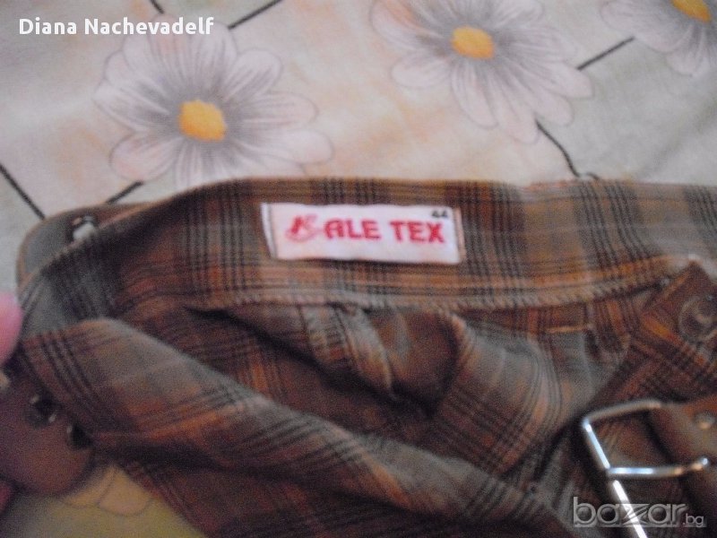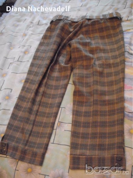нов дамски панталон 7/8 в каре-бежово и кафяво,отдолу е с маншет и две копчета,с два джоба отпред и допълнителен колан,размер ес