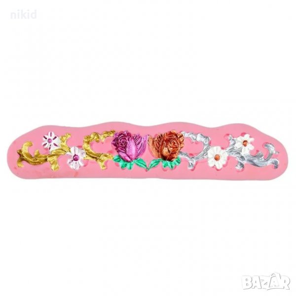 цветя и рози борд кант силиконов молд декорация за торта фондан,тесто гъмпейст украса шоколад мъфини → Обява 16984632
